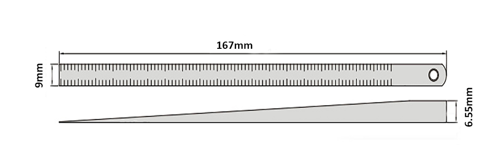 High-accuracy stainless steel feeler gauge with 0.4-6mm measuring range, 0.05mm division value. There is some anti-rust oil on the stainless steel feeler gauge to prevent it from becoming rusty.