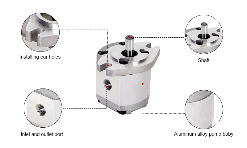 - Hydraulic single gear pump uses high-strength aluminum alloy shell and alloy steel hard gear transmission, which is light in weight and stable in transmission.