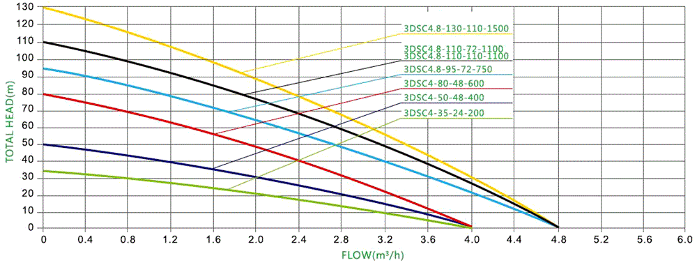 Max. Flow: 4.8m³/h, Max. Head: 110m, Model: 3DSC4.8-110-110-1100