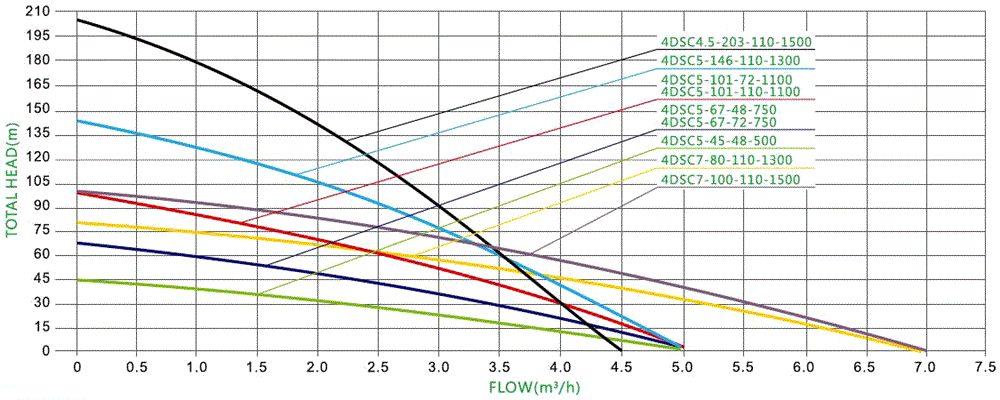 1100W 110V DC 4 inch water well pump performance curves