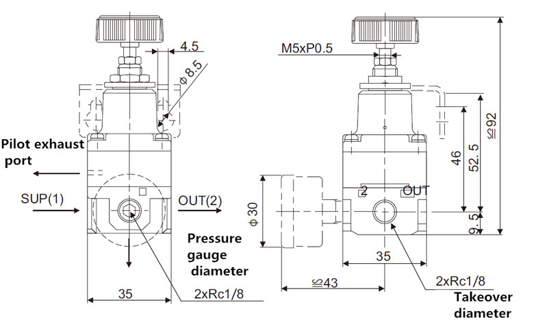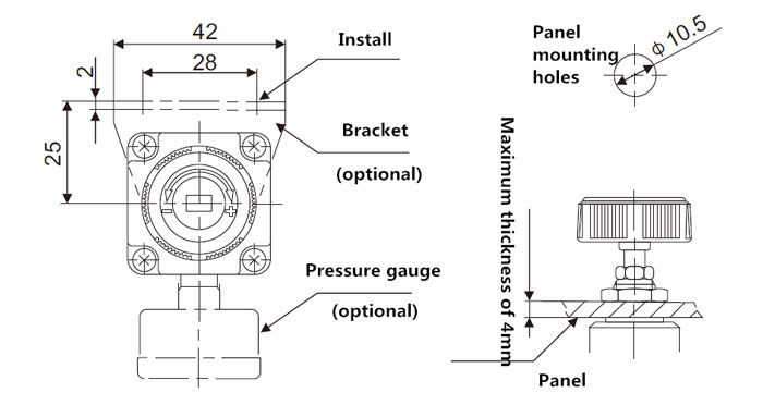Air Pressure Regulator 1/8 Inch Dimension (Unit: mm)