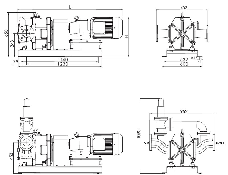 10 kW lobe rotor pump for sale, maximum outlet pressure 12 bar, compact design allows installation in limited space, used in environmental technology, chemical industry, ceramic industry and other fields.