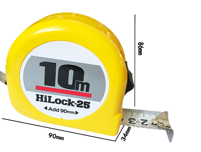 Easy read steel measure tape for sales. The measuring tape with 10m (33 ft) measuring range, and a tape blade width of 25mm. When measuring with the tape of the steel tape measure in the pushing state, in order to supplement the thickness error of the claw, the position of the movable claw can be automatically moved and corrected.