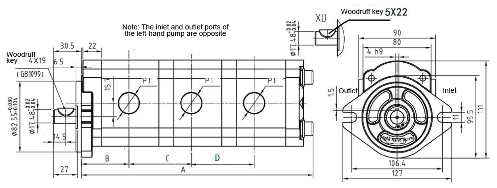 1. The pump rotates CW clockwise when viewed from the shaft end of the pump, and CCW rotates counterclockwise when viewed from the back cover of the pump.