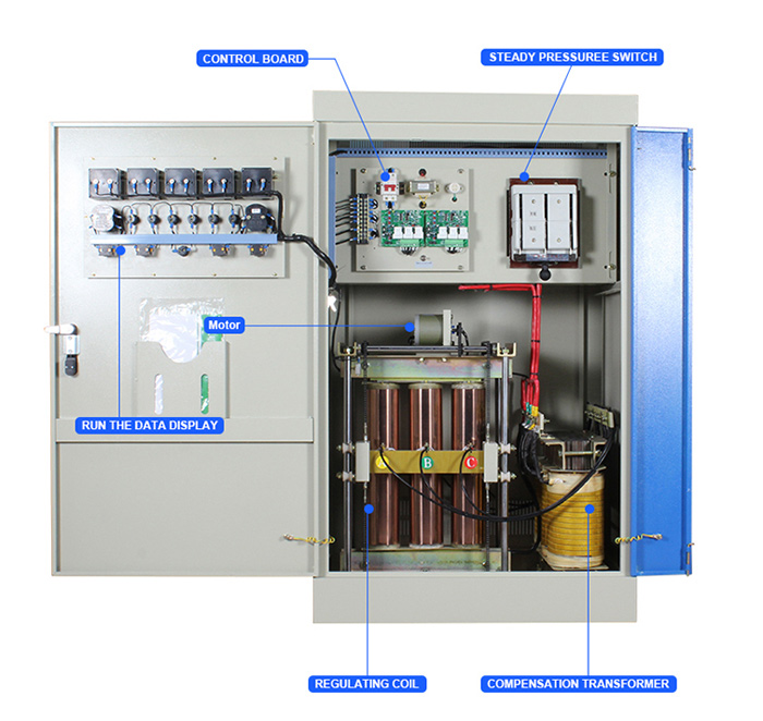 For three-phase voltage stabilizer, the output voltage is a three-phase 380v, three-phase four-wire system, which means that there are three live wires and one neutral wire. We should note that the three-phase voltage stabilizer is phase sequence protected. The phase sequence must not be mistaken when wiring. The input end of the voltage stabilizer is connected to the main power supply, and the output of that is connected to the device. Observe whether the input voltage and output voltage of the regulated power supply are stable. If the output is stable and there is no abnormality, then the three-phase voltage stabilizer can be used.