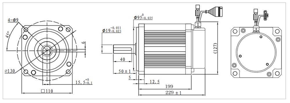 Please check the attached 3D model of this motor ATO-130WDM06030-48, and see the motor spec on: https://www.ato.com/Content/doc/bldc-motor-130mm-series/ATO-130WDM06030-24-48 -72-96.pdf