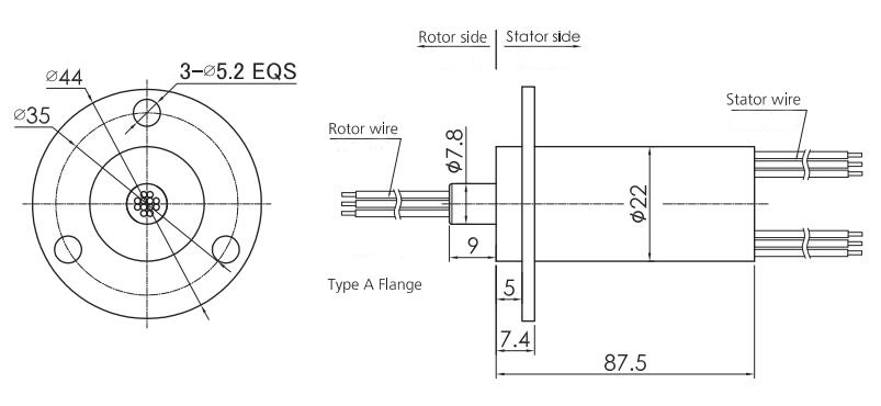 Dimension Drawing of 25mm Miniature Capsule Slip Ring Connector (Type A Flange)25mm Miniature Capsule Slip Ring Connector (Type A Flange) Dimension Drawing