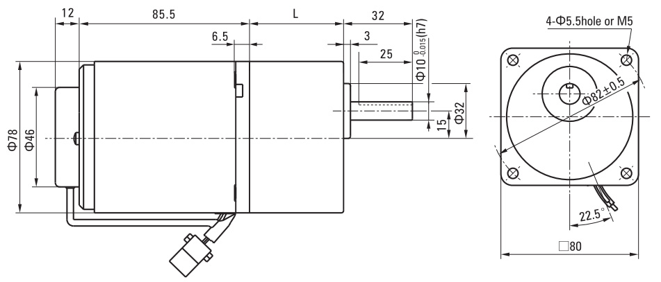 (Note: Gear ratio of 3~18, L=32mm; Gear ratio of 25~200, L=43.5mm)