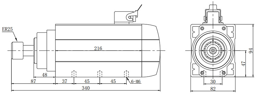 - Spindle motor with air cooling fan and ER25 collet ensures smooth running.