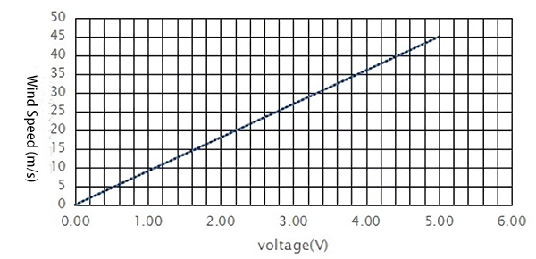 The span of this wind speed range is 45m/s, expressed by a 5V voltage signal,