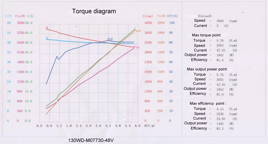 I can't answer those questions right now; many parameters will only be known after production and testing. Because this product isn't in stock and isn't mass-produced, the parameters of each batch of motors will differ. For the average buyer, dimensions, speed, voltage, power, and torque are usually sufficient.