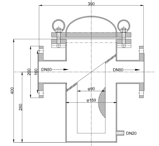 ATO-SSBS-DN80 strainer is suitable for 3-inch pipes, but it is not NSF certified for drinking water and can be used for 50% sodium hydroxide.