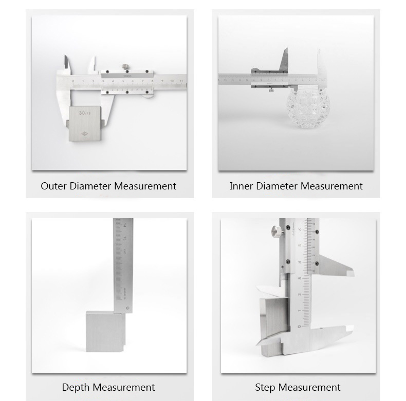 The provided vernier scale is designed for measuring length, depth, inner diameter and outer diameter in science labs, medical purposes, steel industries and aerospace industries. 300 mm vernier caliper is equipped with a depth gauge, carbon steel materials, 0.02 mm reading, suitable for science labs, medical purposes, steel industries, aerospace industries, etc.