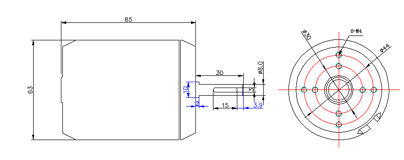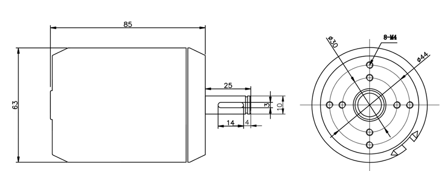 8mm Shaft Brushless DC Motor Dimensions Drawing (Unit: mm)