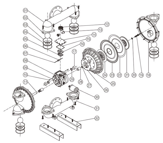 Air powered diaphragm pump driven by compressed air, can suck a variety of toxic, flammable, volatile liquid, acids, alkalis, corrosive liquids, high viscosity fluids and paint binders. It is no need for irrigation and suction lift is up to 7m, which is perfect pneumatic device for pumping the medium containing impurities.