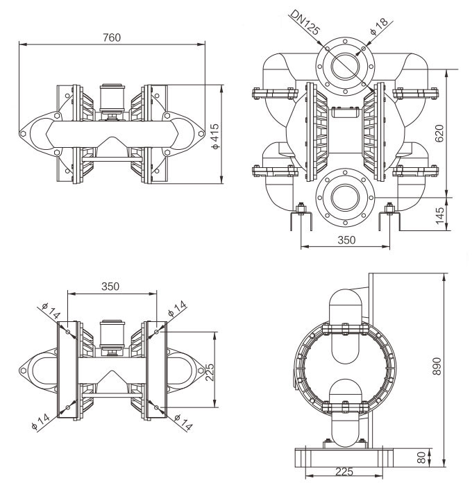 - Pneumatic dual diaphragm pump can transport high temperature media up to 130 ℃.