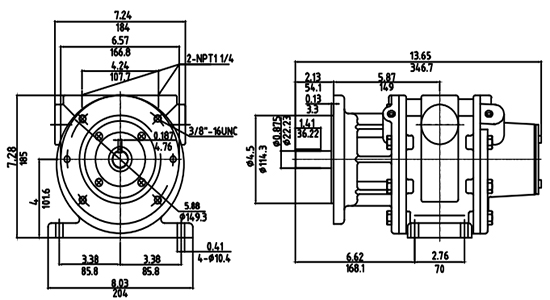 Dimension of 9.5hp pneumatic vane air motor
