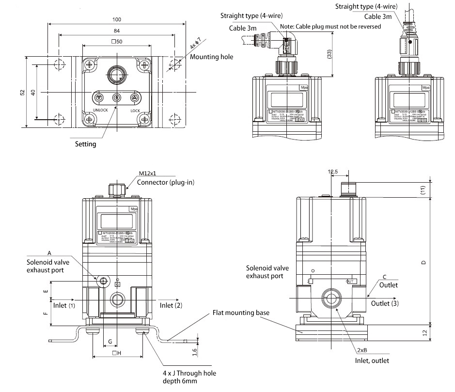 Dimensions of 50~9000 mbar 3/8 inch Proportional Pressure Regulator with Flat Bracket