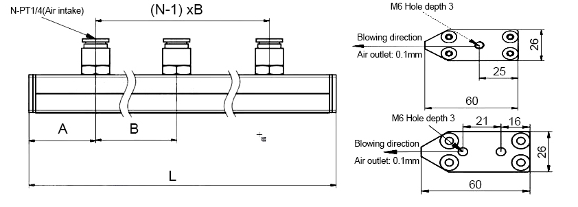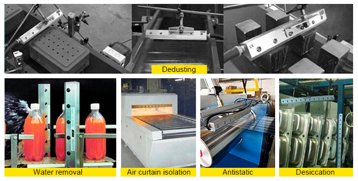 This air knife is made of aluminum alloy which has strong airflow, even airflow. The aluminum alloy air knife lengths available in various specifications, such as 3", 4", 6", 12", if you need other air knife models, please note the order for customization. This air knife is widely used in products that require water removal, dust removal, drying, cooling.