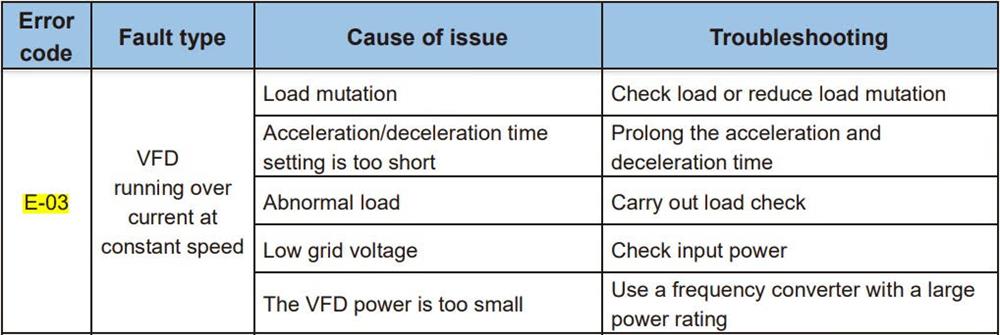 vivi wrote:Hello, our motor is 2kW, 230V, 60Hz single phase. But we are not directly connected to the motor. We have a 230V 50Hz power supply to the drive, then out of the drive 230V 60Hz to the motor controller, then out to the motor. I have the drive outputting 230V 60Hz, but as soon as I press start on the motor controller, it gives the E-03 fault code.