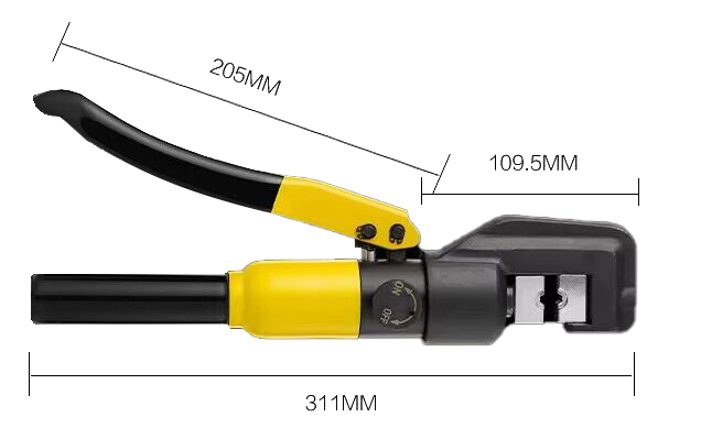 Manual hydraulic crimping plier for sale online, available with a 5 ton output power, 11mm stroke, 6-70mm2 copper terminal or 4-50mm2 aluminum terminal crimping range, suitable for electrical, telecommunications, automotive and plumbing industries.
