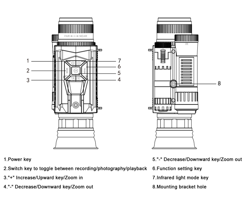 - 8x Digital Zoom for Long-Range Detail Observation: Featuring 8x digital zoom capability, the infrared night vision monocular allow you to closely inspect distant targets without compromising image clarity, making it ideal for surveillance and wildlife monitoring.