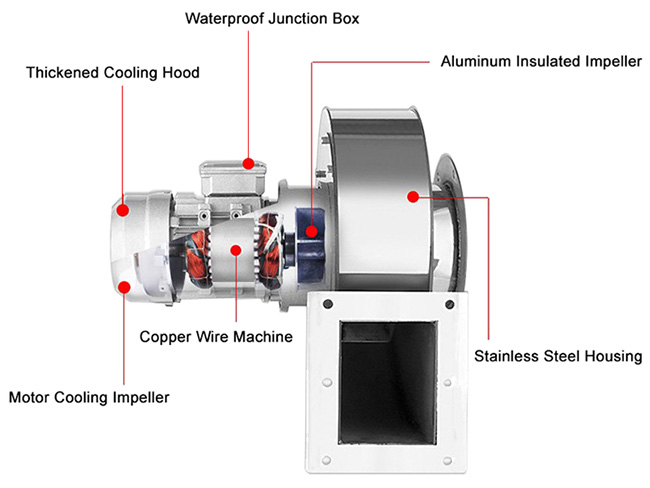 This stainless steel centrifugal fan left a deep impression on me. Firstly, its manufacturing process is very sophisticated. The all stainless steel material not only has a smooth and beautiful appearance, but also has excellent anti-corrosion and rust prevention properties. Even in humid or corrosive environments, it can operate stably for a long time, greatly extending the service life of the equipment.