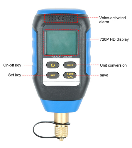 Buy a digital vacuum pressure meter with 720P LCD display and alarm. It is a portable vacuum test gauge used for measuring vacuum pressure in the range of 0~10kPa, 0~100.00mBar, 0~75.000mmHg and 0~75000Micron.